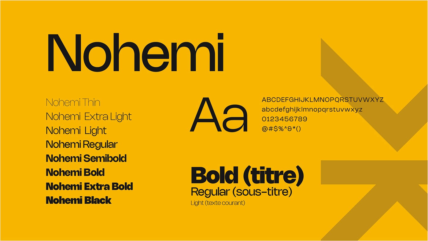 • La Typographie : J'ai choisi la Nohemi, une police sans-serif géométrique et moderne. Elle est lisible, technique et dépourvue de fioritures inutiles.