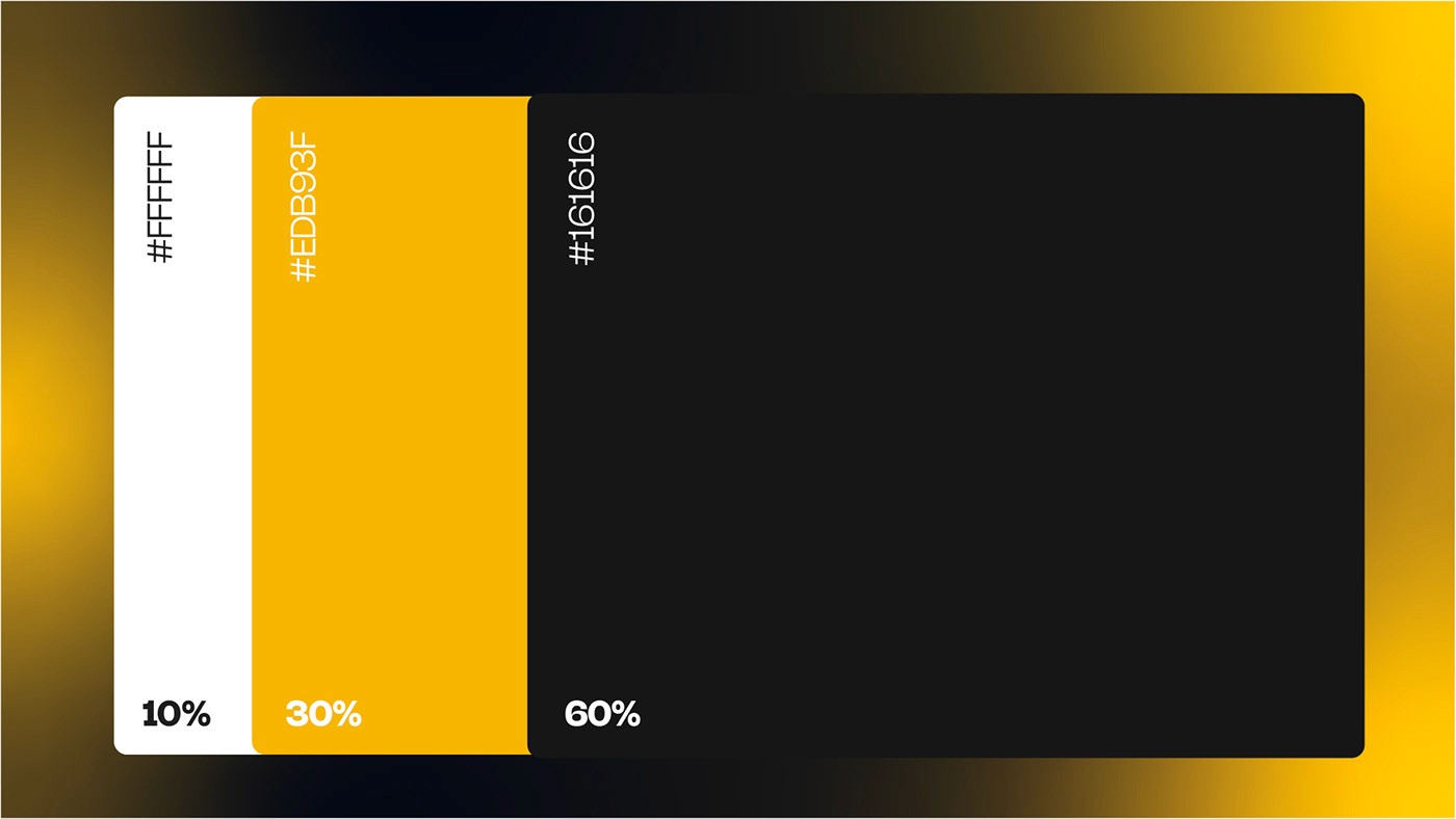 • La Palette (Impact) : Exit les dégradés complexes. J'ai opté pour un contraste radical : Noir Profond (#161616) pour l'élégance et Jaune Signal (#EDB93F) pour la visibilité et l'avertissement. C'est le code couleur des zones de haute sécurité.